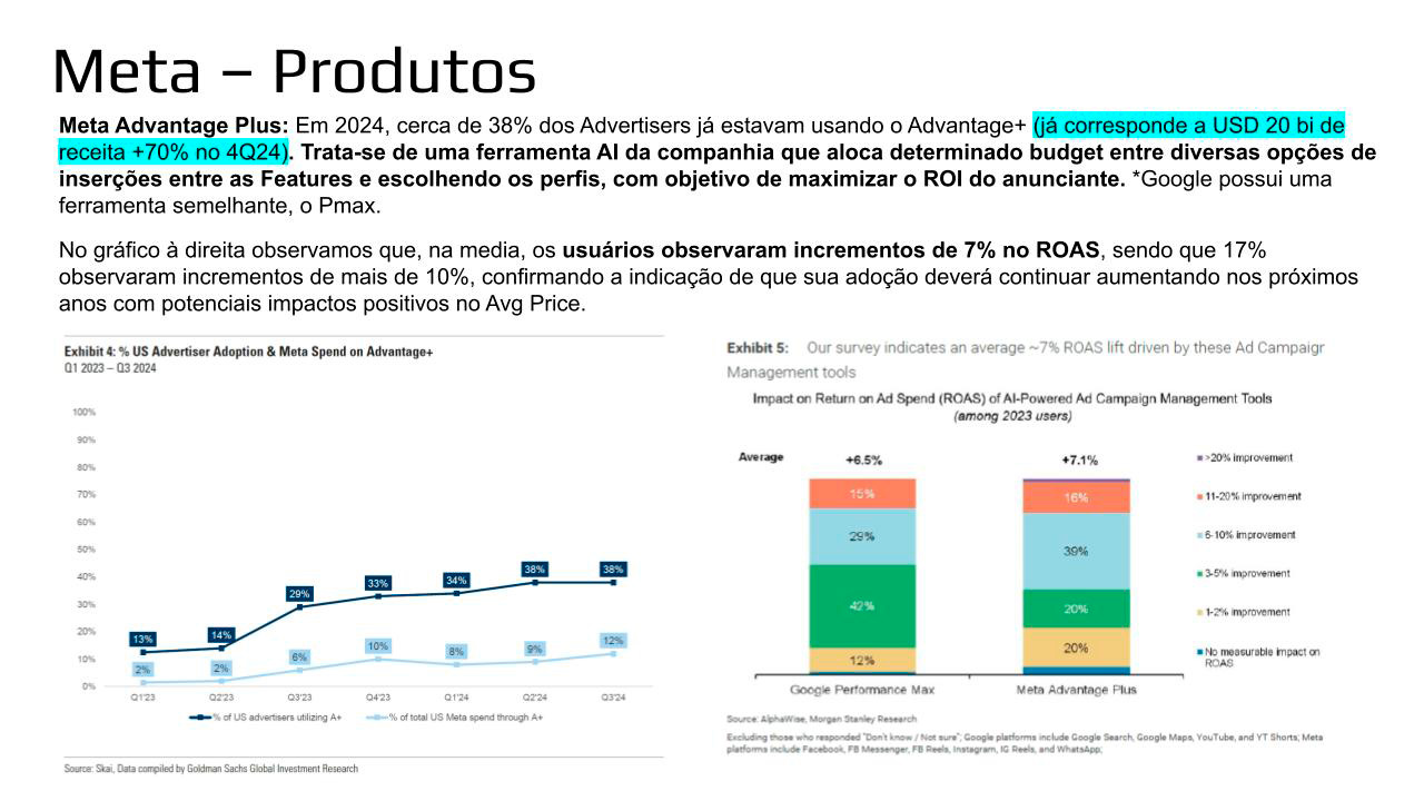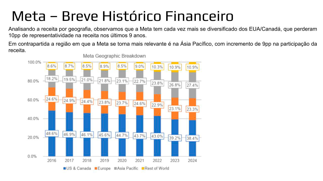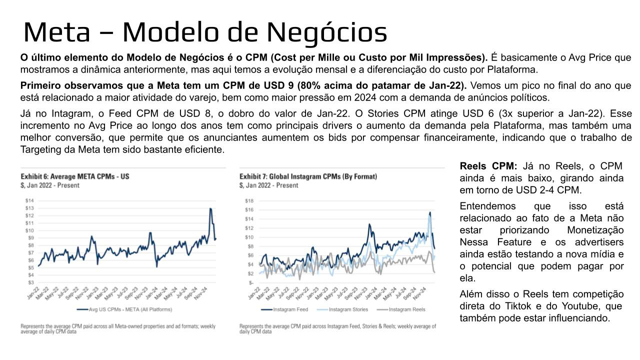 A Meta entregou resultados sólidos no 4T24, impulsionada pela retomada da receita de Ads, crescimento do Reels e disciplina em custos. Neste relatório, analisamos o ecossistema da empresa – Facebook, Instagram, WhatsApp e Threads – a relevância da infraestrutura própria em IA, a expansão da Meta Llama e os investimentos no Reality Labs.