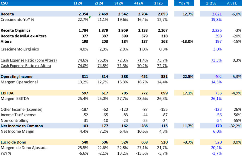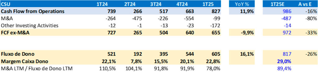 - CSU Maintanance: +4% ex-FX, resultado saudável