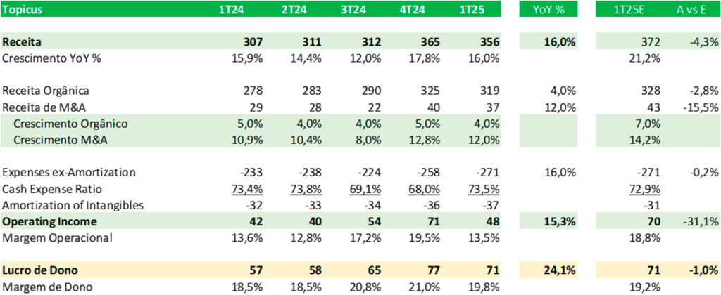 Olhando apenas o consolidado, o M&A do 1T25 parece discreto: