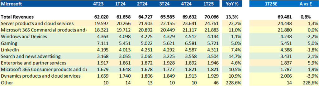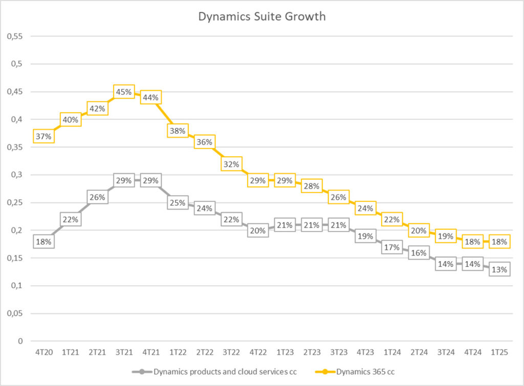 O Dynamics cresceu +10,9% (13% cc), com destaque para o Dynamics 365, que avançou +18%.