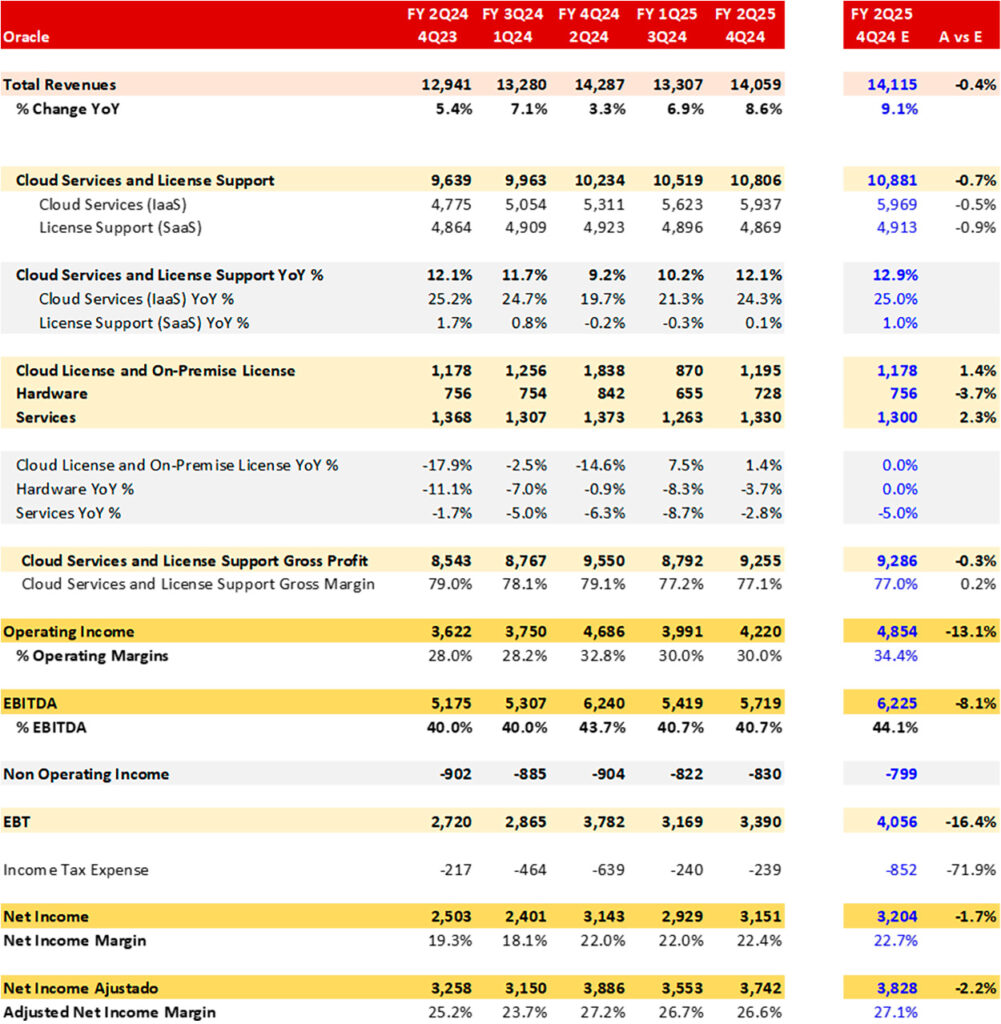 Acabamos de finalizar o call da Oracle e esses são os principais destaques do resultado do segundo trimestre fiscal de 2025 — que cobre os meses de outubro e novembro. A própria Oracle aproveitou para exaltar seus sistemas de gestão, destacando que conseguiu reportar os números apenas nove dias após o fechamento do trimestre, algo realmente impressionante para uma empresa desse porte.